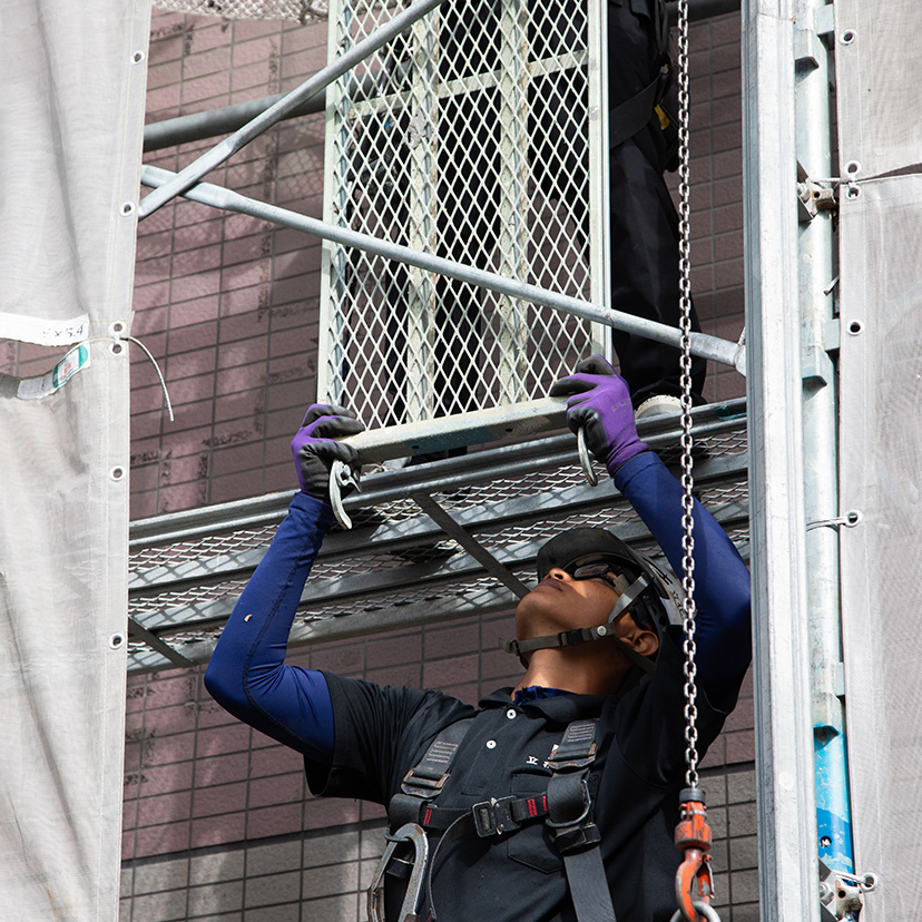 私たちは「技術力」と「スピード」で現場を支える足場のプロ集団です。確かな技術と素早い対応で、安全かつ効率的な足場を提供し、現場の円滑な施工をサポートします。